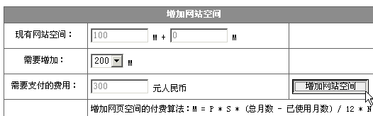 1> 进入虚拟主机管理界面: 2> 点击"虚拟主机升级",找到"增加网站空间" 3> 选择需要增加的空间容量,然后点"增加网站空间",即可。